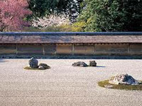 公家の徳大寺家の別荘跡地を、宝徳2年(1450年)、室町幕府管領の細川勝元が譲り受け創建。世界的に名の知れた石庭は哲学者サルトルやエリザベス女王が訪れて絶賛したことで世界的な“Zen Garden”として有名になる。白砂の上に15個の自然石が配された禅の精神が凝縮された枯山水庭。